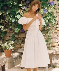 - 가슴라인에 더해진 잔잔한 셔링이 라인을 따라 자연스럽게 흐르는 실루엣