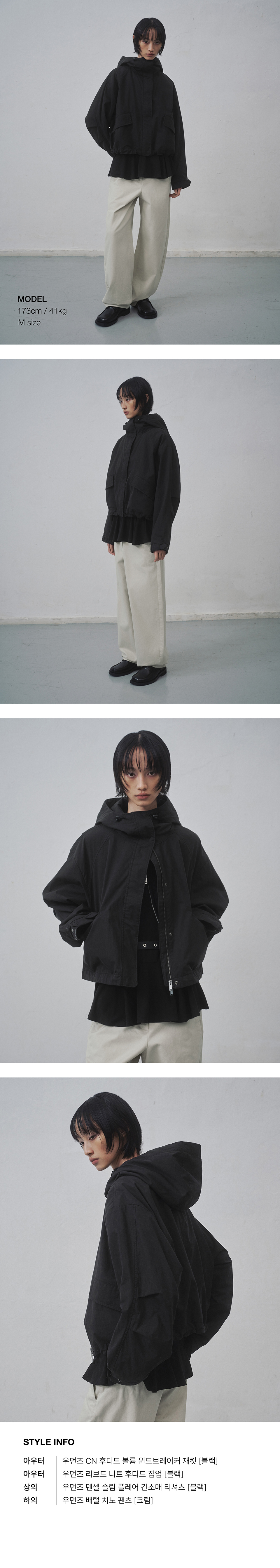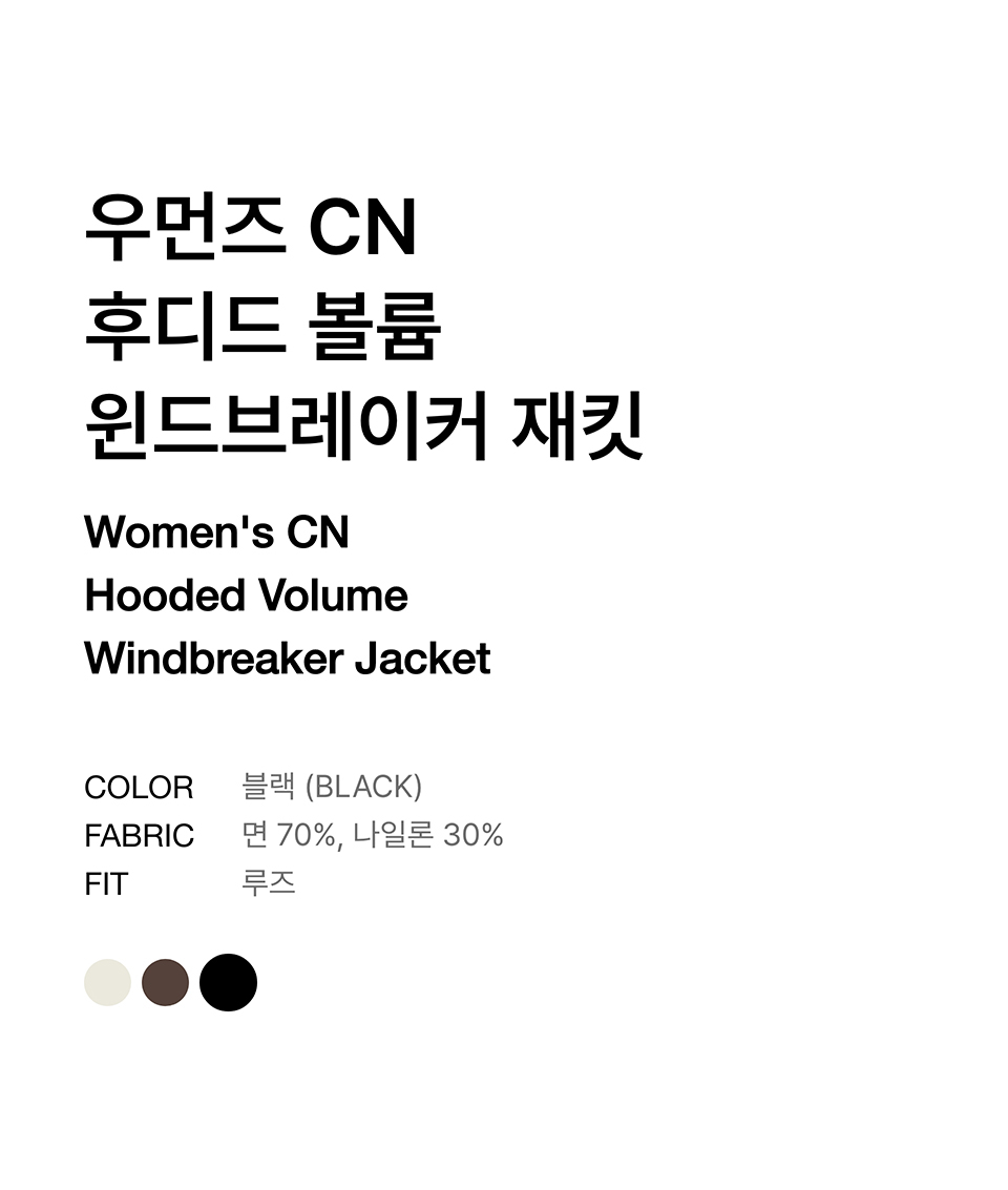 우먼즈 CN 후디드 볼륨 윈드브레이커 재킷 [블랙]