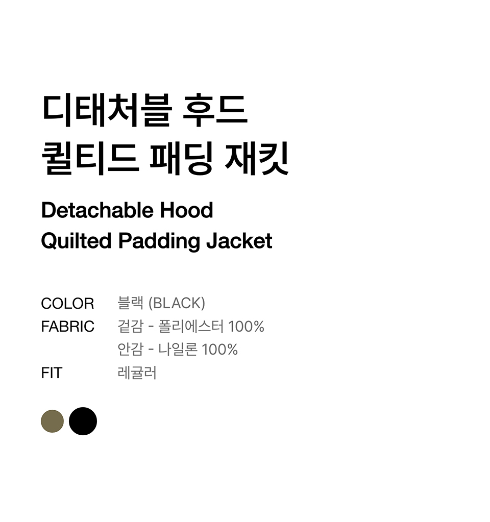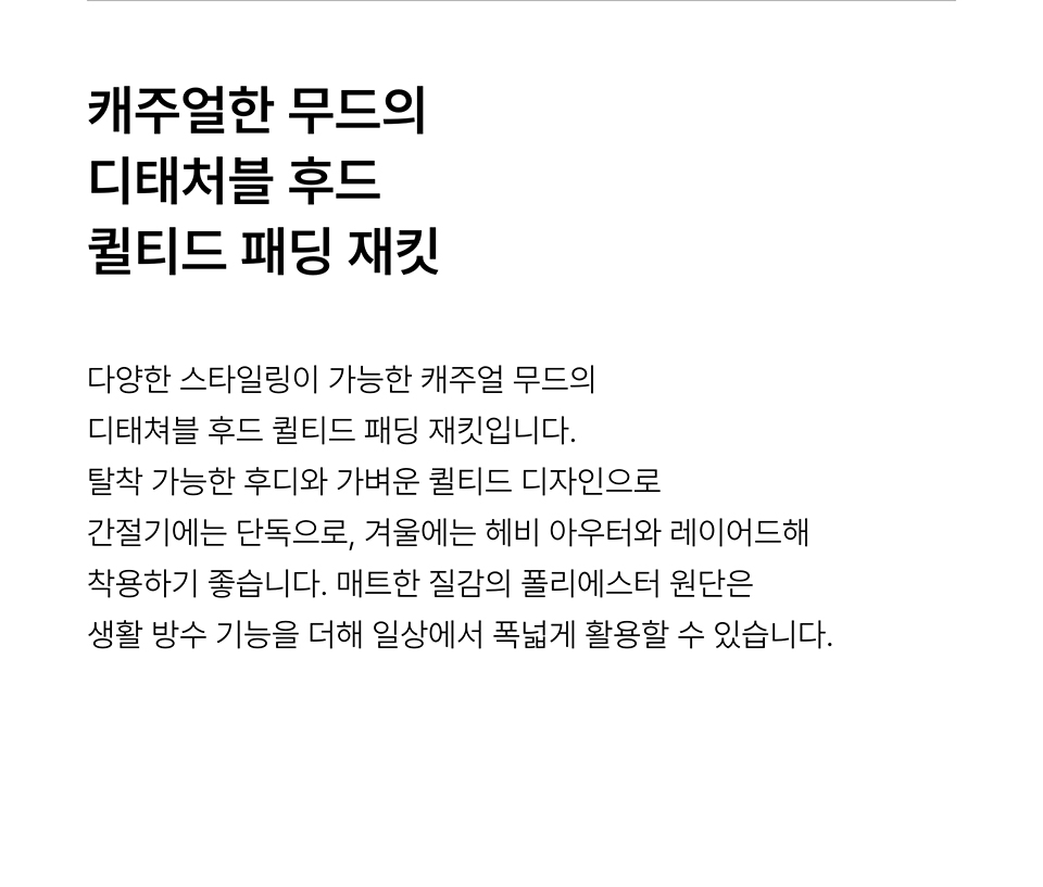 디태처블 후드 퀼티드 패딩 재킷 [블랙]