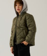 디태처블 후드 퀼티드 패딩 재킷 [카키]