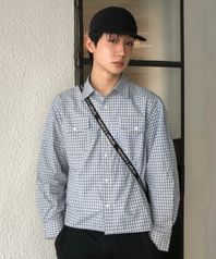 프렌치 스트라이프 시어서커 셔츠 [블루 x 블랙]
