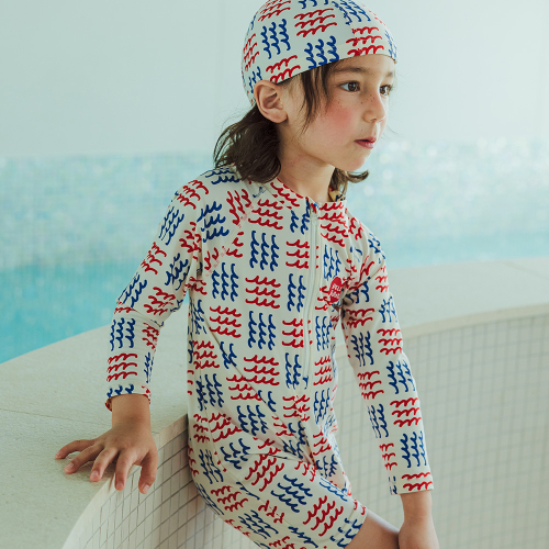 벨리타앤보이즈 스테디셀러인 웨이브 패턴이 올프린팅된 바디수트 스타일의 래쉬가드입니다.