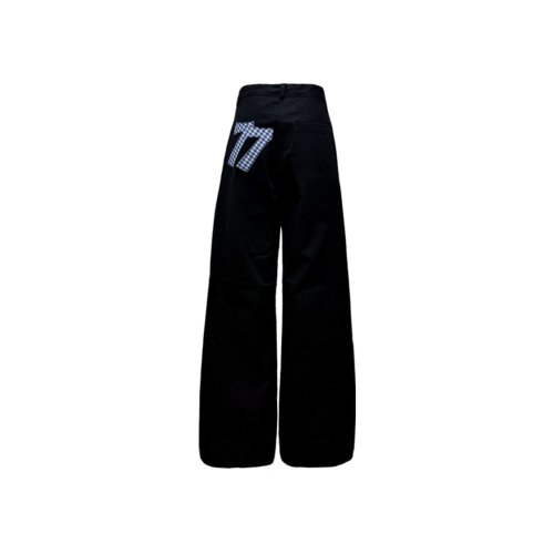 뒷면에 러프하게 마감된 체크셔츠 패턴의 아플리케 자수