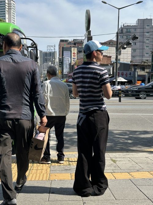 와이드 실루엣의 코튼 팬츠