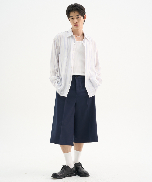 빈티지 썸머 플리츠 오버 셔츠_더스티 블루