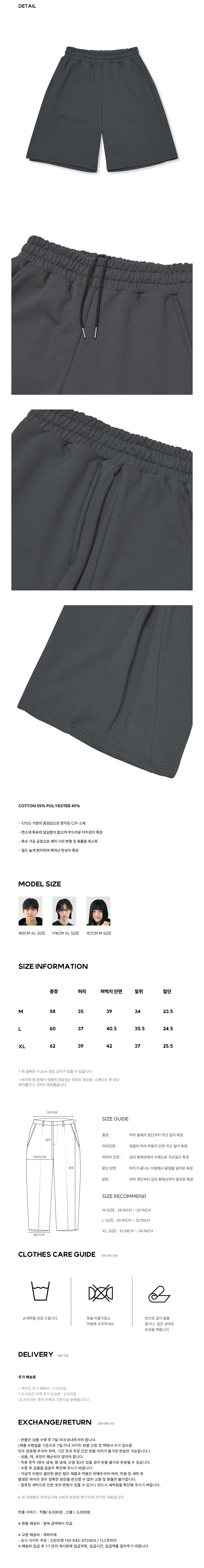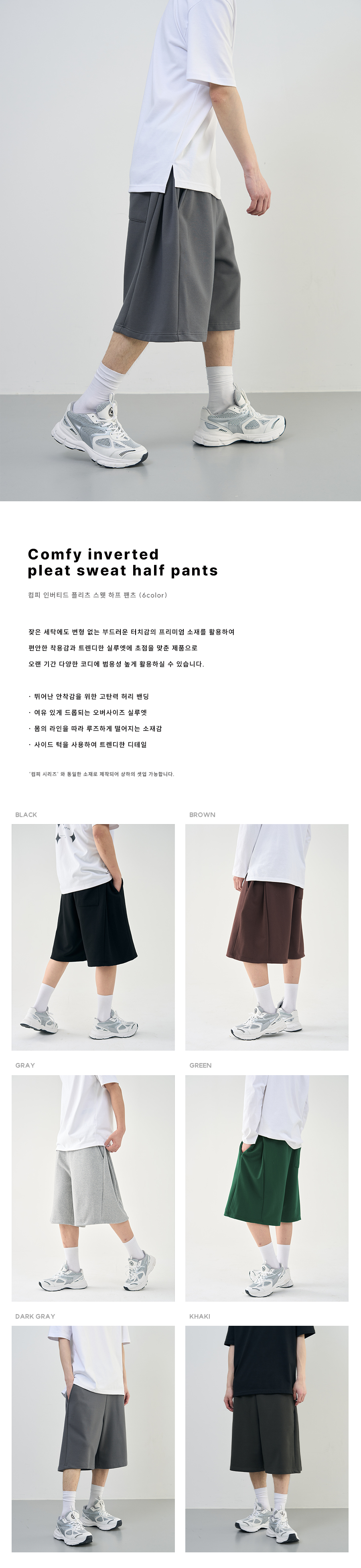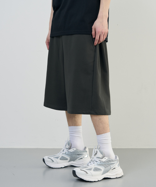컴피 인버티드 플리츠 스웻 하프 팬츠 [DARK GRAY]