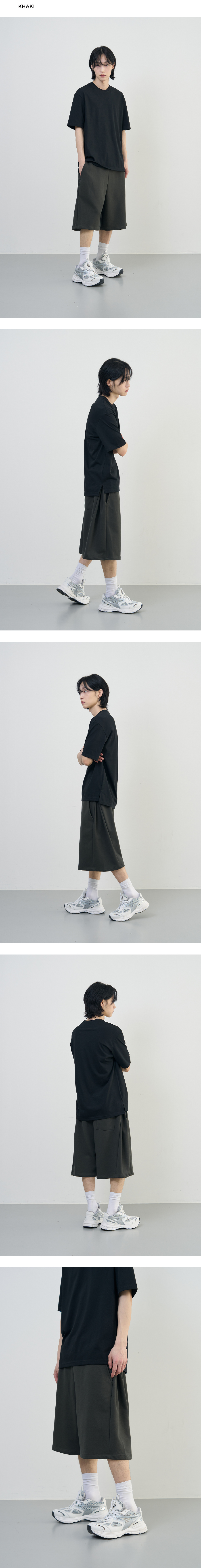 와이드 원턱 밴딩 하프 치노 팬츠 [BLACK]