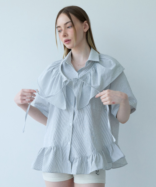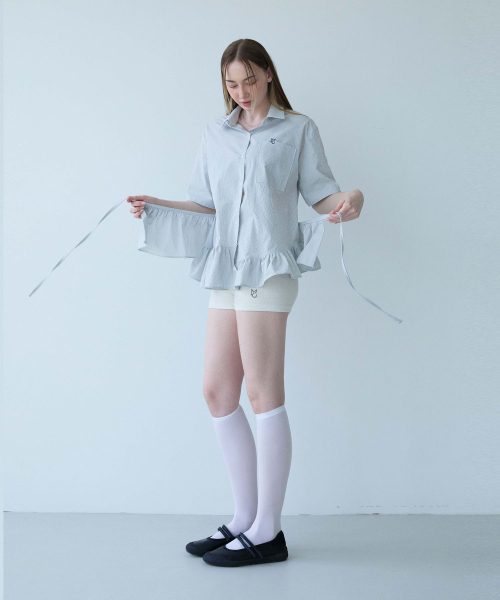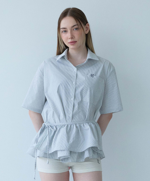 Stripe Frill Belt Set Shirt-White