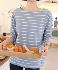 스트라이프 보트넥 5부 티셔츠