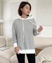 후드배색 스트라이프 후드티셔츠