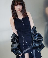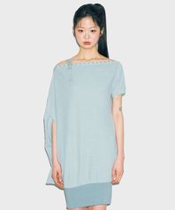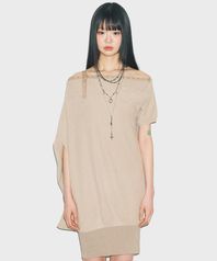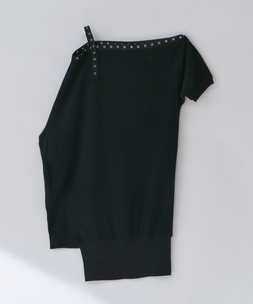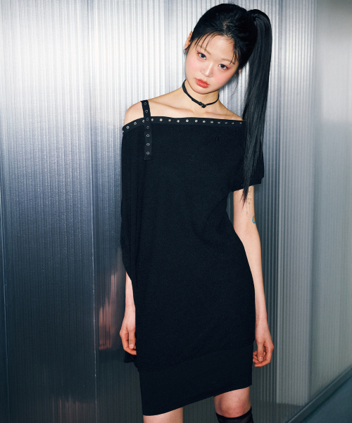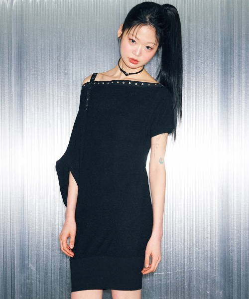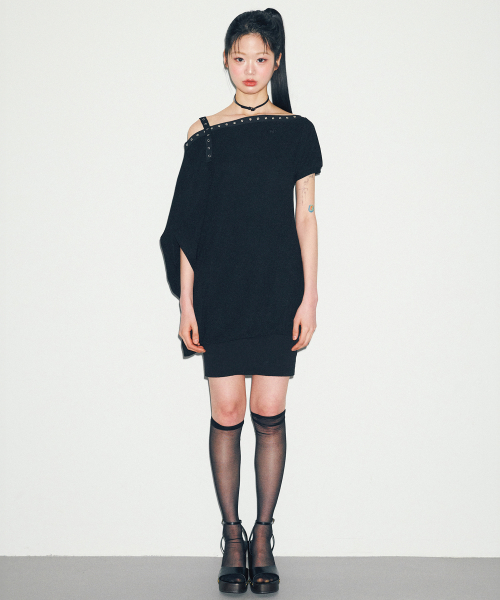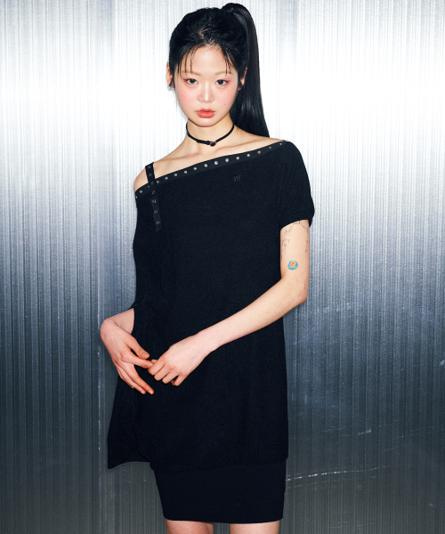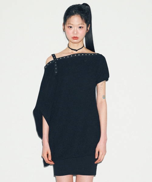 D07.00 Unbalanced boat neck short-sleeved Dress _ Black