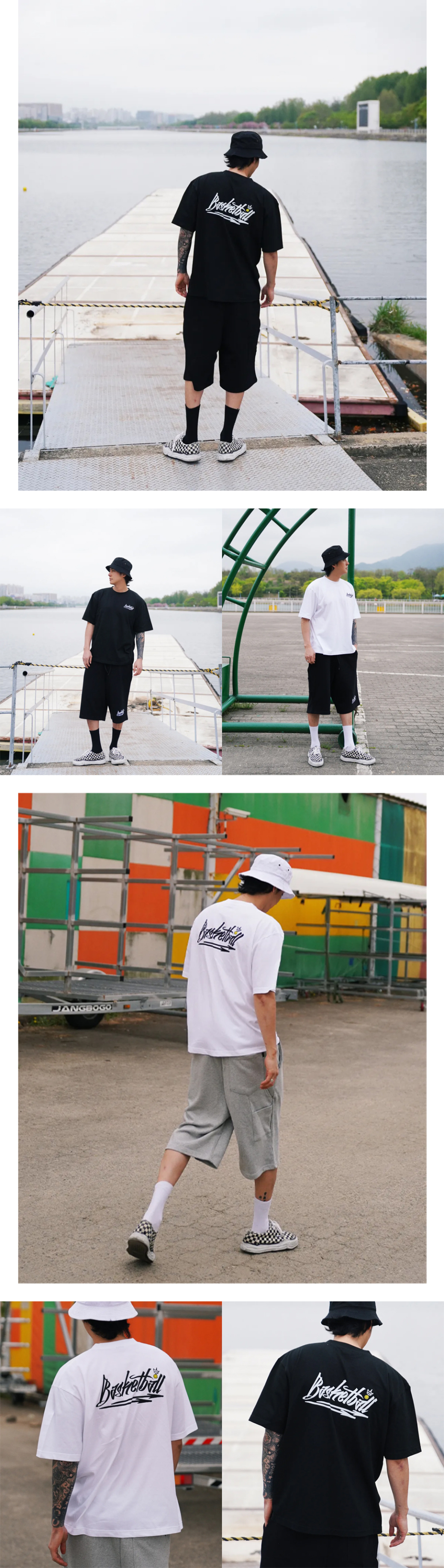 바스켓볼 반팔티 오버핏 차콜 화이트