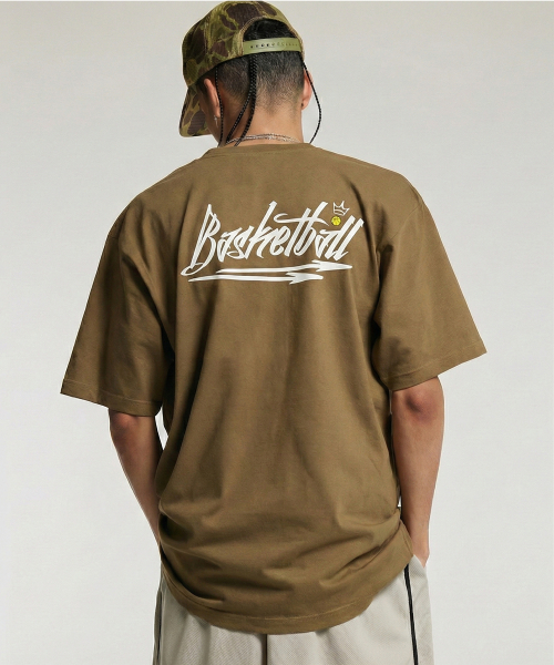 바스켓볼 반팔티 오버핏 올리브 화이트