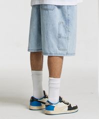 버뮤다 카펜터 숏 데님팬츠 밴딩 라이트 블루