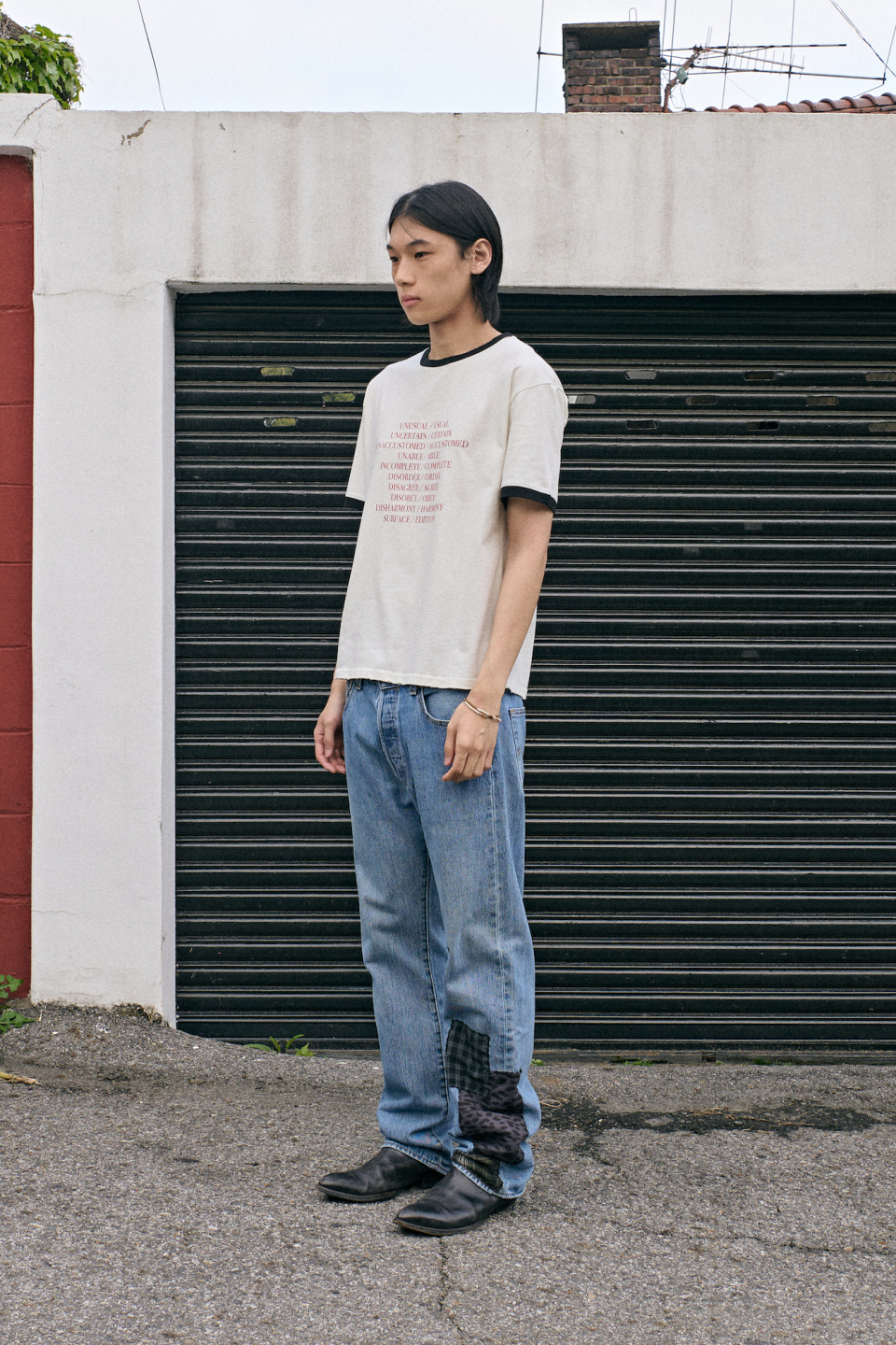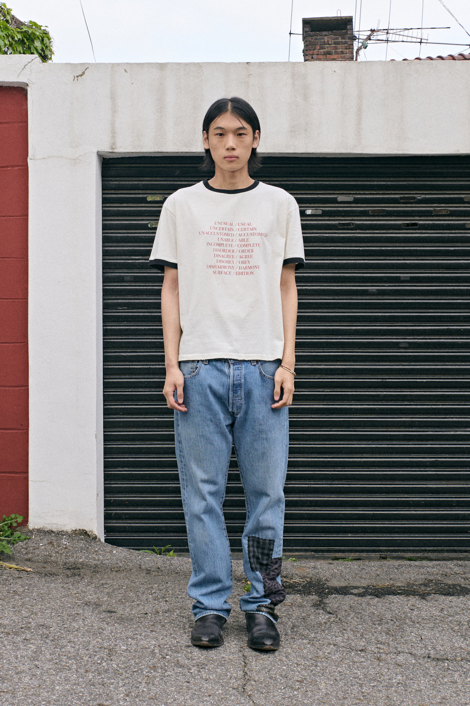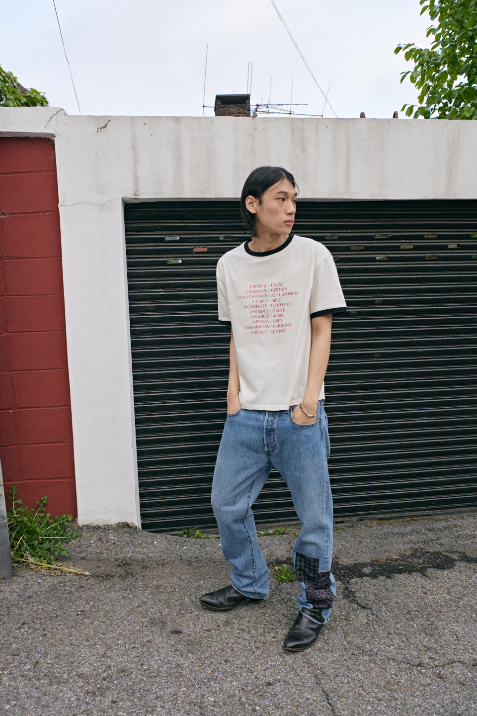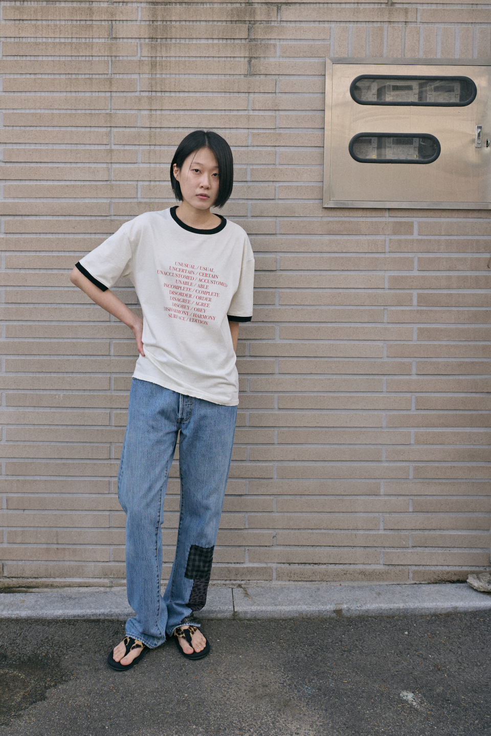 - 상반된 단어들 사이에서 주는 긴장감과 양면성을 표현하는 타이포그래피 링거티셔츠