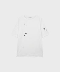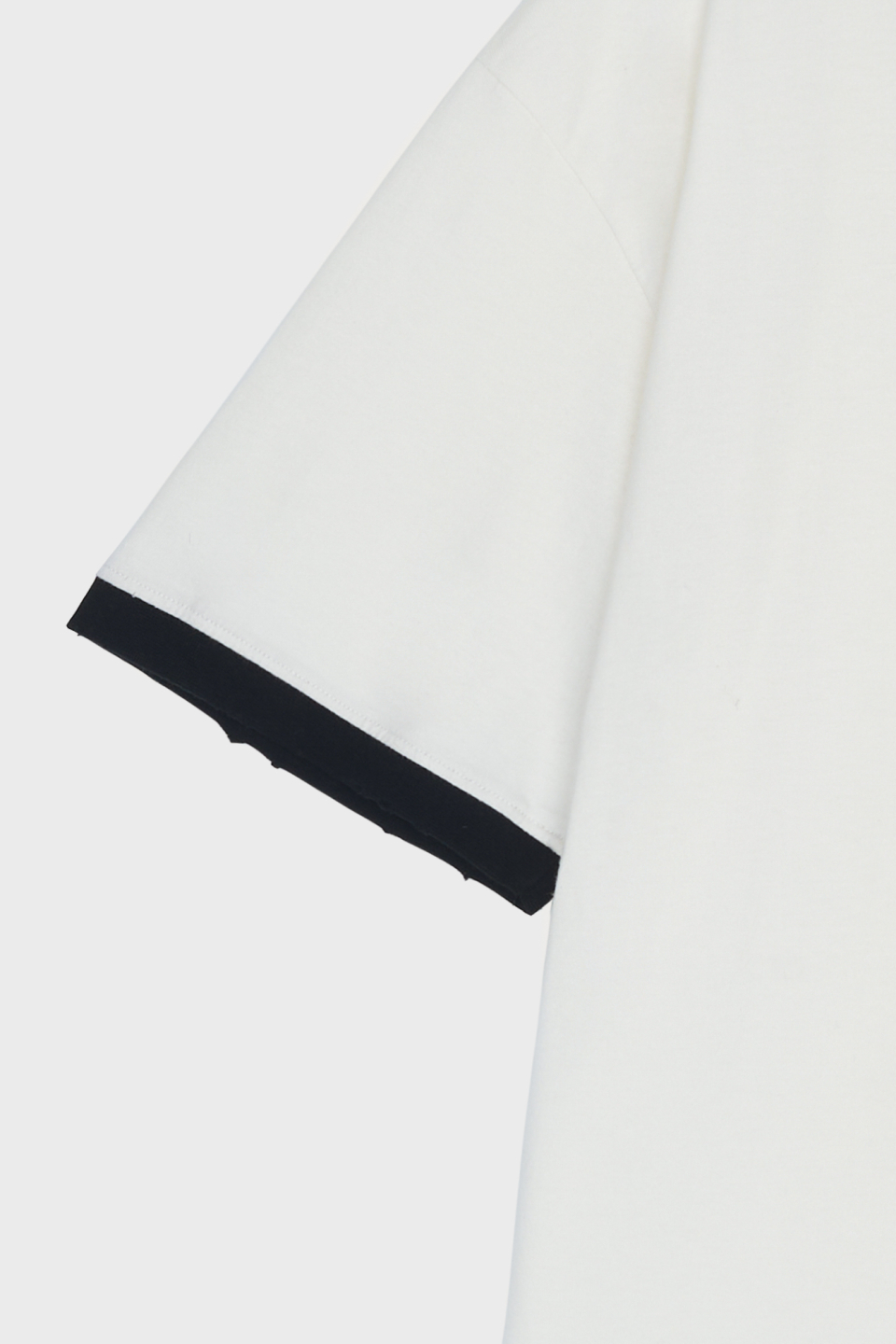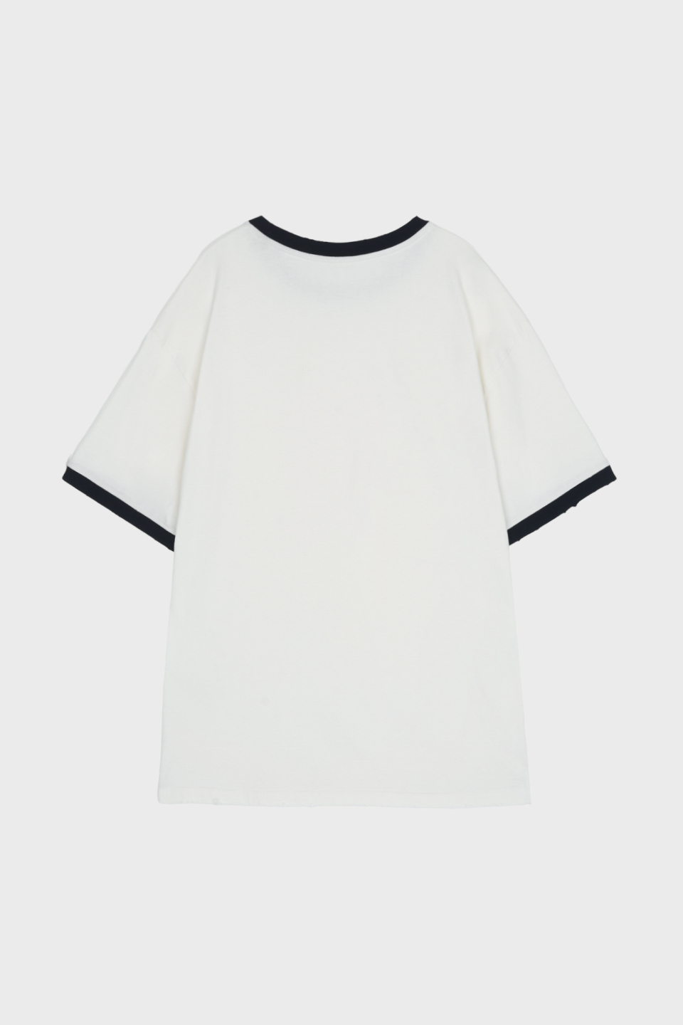 소매단과 네크, 밑단에 데미지드 디테일이 있습니다.