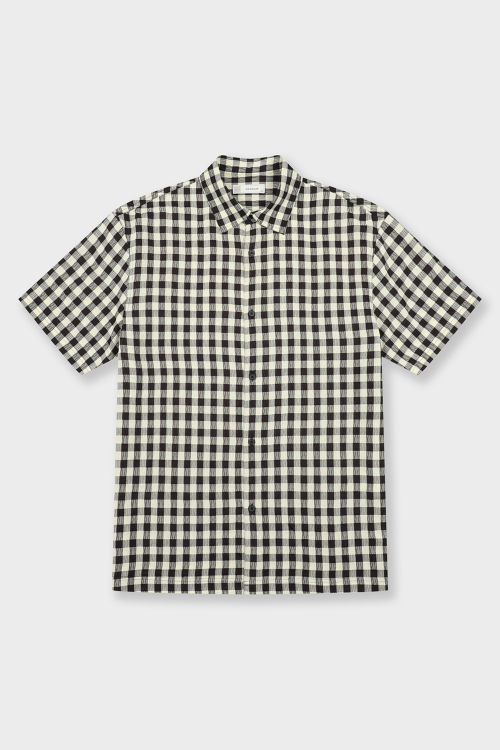 체크패턴 깅엄 반팔셔츠 블랙 BN4MBA681BK
