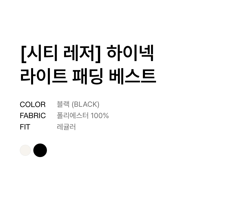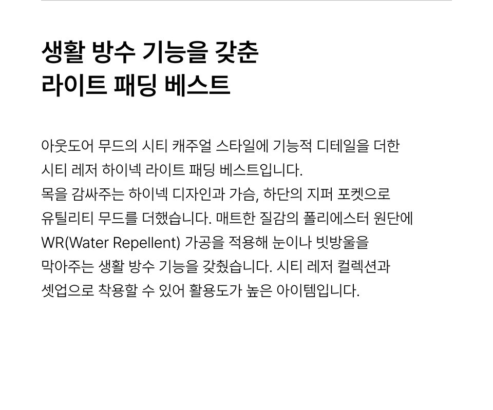 [시티 레저] 하이넥 라이트 패딩 베스트 [블랙]