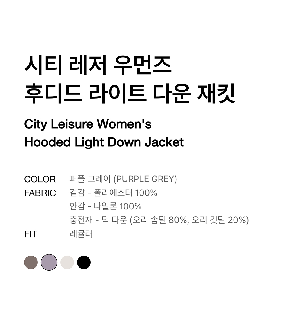 [시티 레저] 우먼즈 후디드 라이트 다운 재킷 [퍼플 그레이]