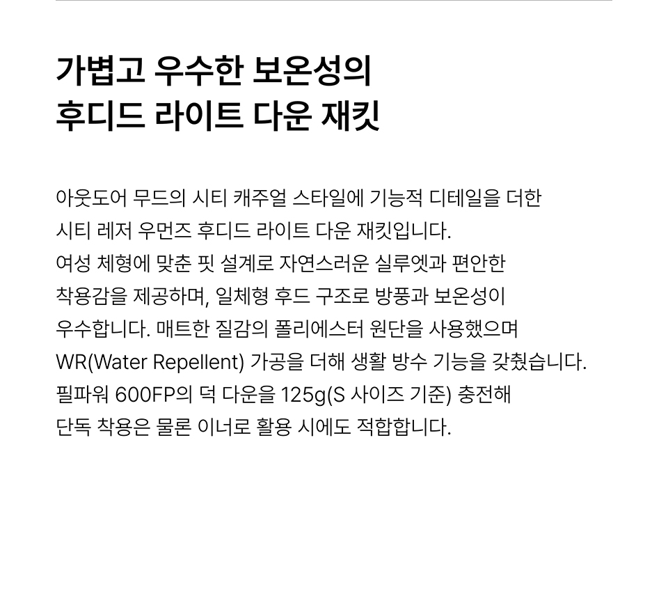 [시티 레저] 우먼즈 후디드 라이트 다운 재킷 [블랙]