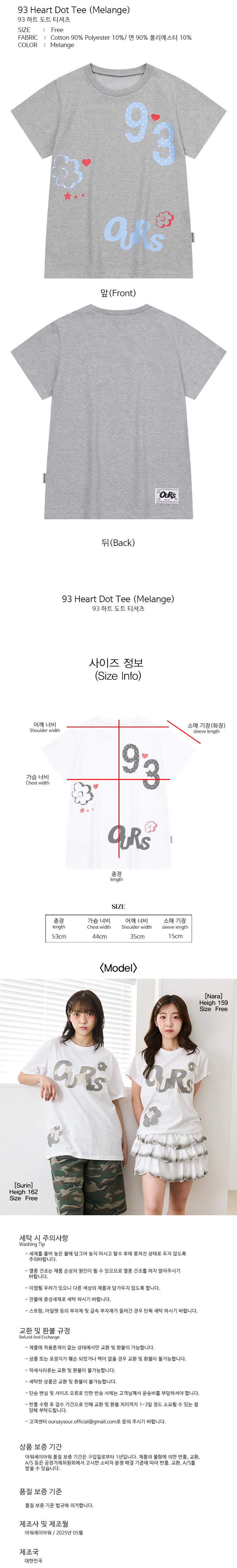93 하트 도트 플라워 반팔티 메란지