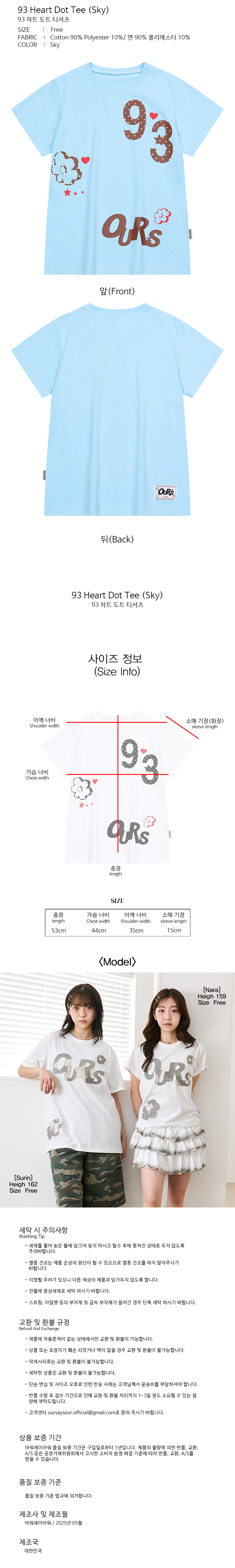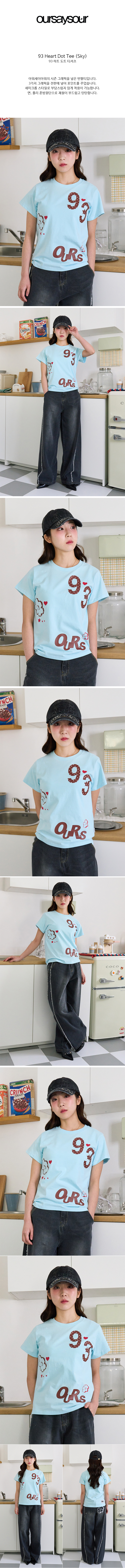 93 하트 도트 플라워 반팔티 스카이