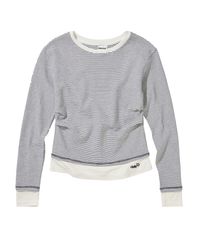 스트라이프 배색 핀턱 긴팔티셔츠 화이트