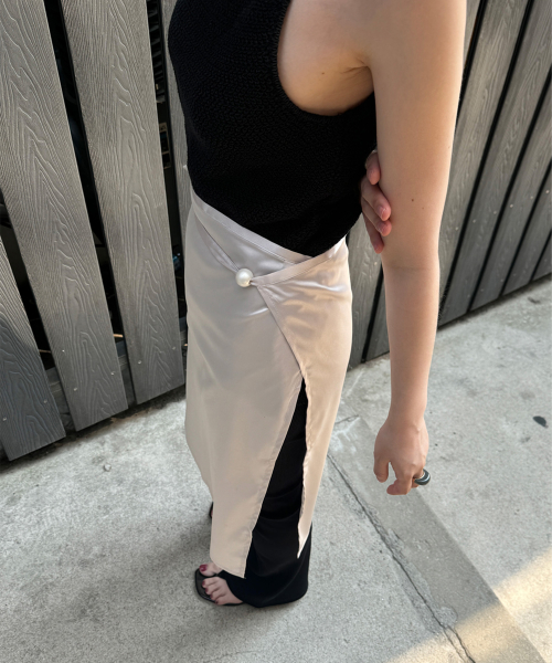 피즈 레이어드 랩 스커트 - Silver