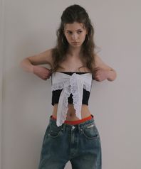 COTTON EYELET TUBE TOP_BLACK/WHITE