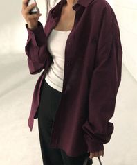 마이크로 체크 오버핏 셔츠 와인