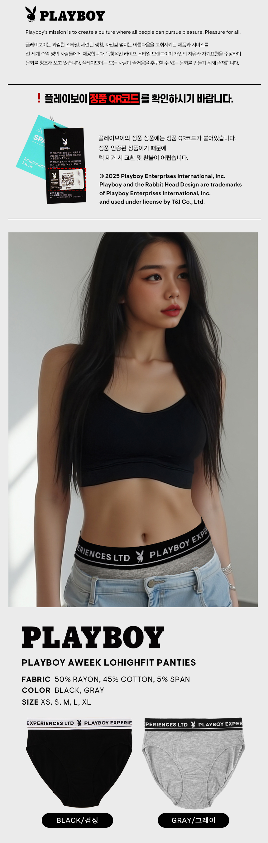 플레이보이(PLAYBOY)는 잡지를 넘어 의류와 주얼리 등 다양한 분야에 진출하여 전 세계인들의 세련된 라이프스타일을 선도하고 있습니다. 플레이보이의 토끼 로고는 세련되고 지적인 삶, 로맨틱하고 신나는 인생을 상징합니다.