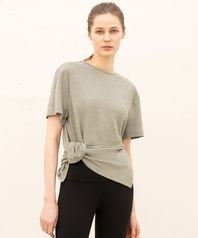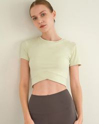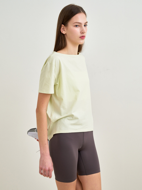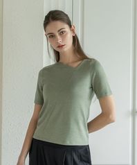 (FM40522)비대칭 넥 숏 슬리브_세이지그린