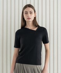 (FM40522)비대칭 넥 숏 슬리브_뉴블랙