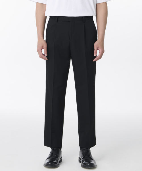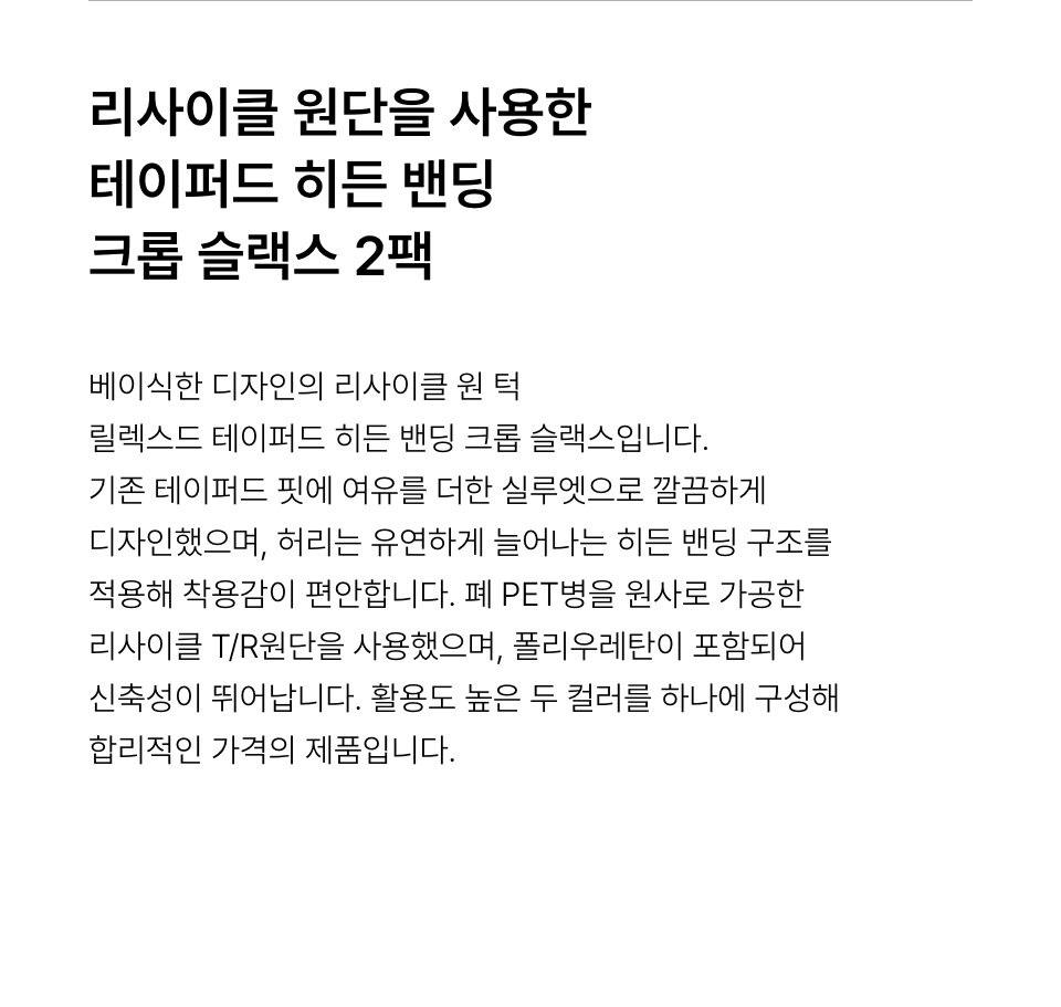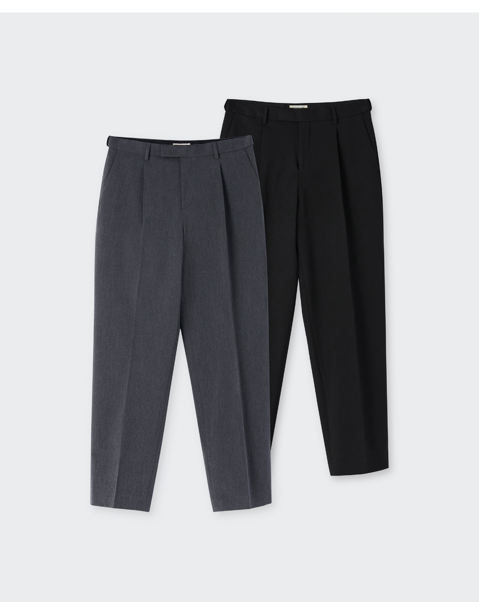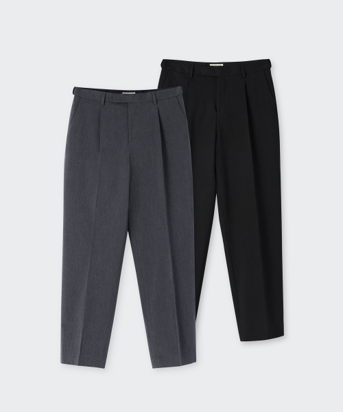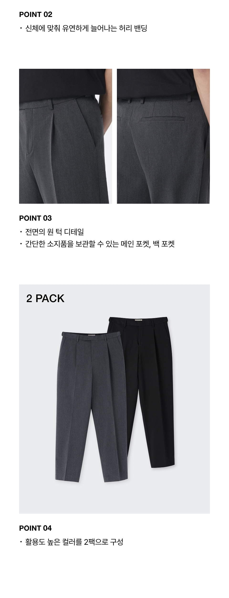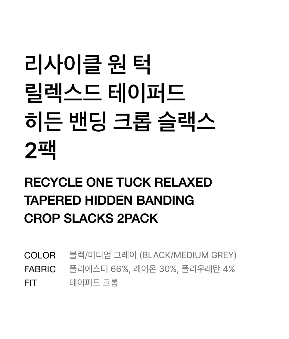 리사이클 원 턱 릴렉스드 테이퍼드 히든 밴딩 크롭 슬랙스 2팩