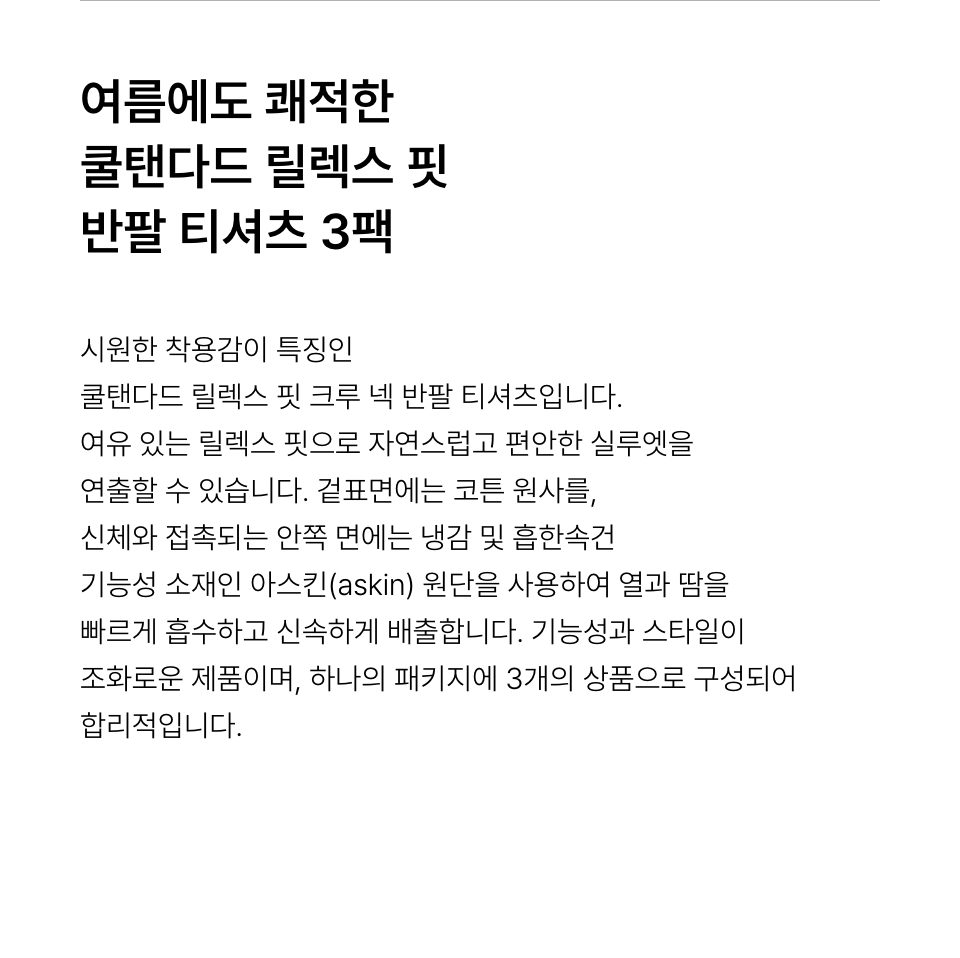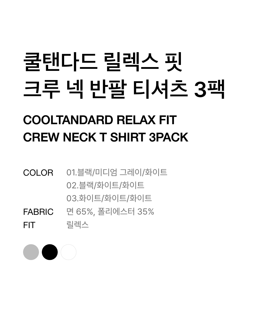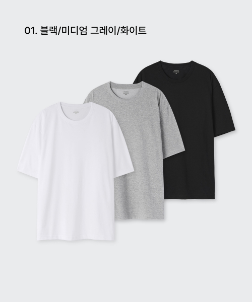 [쿨탠다드] 릴렉스 핏 크루 넥 티셔츠 3팩