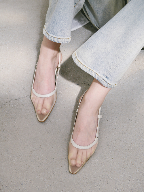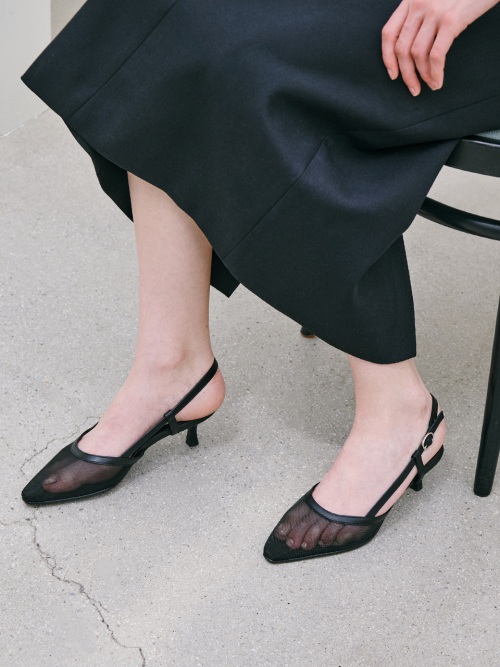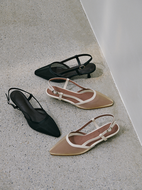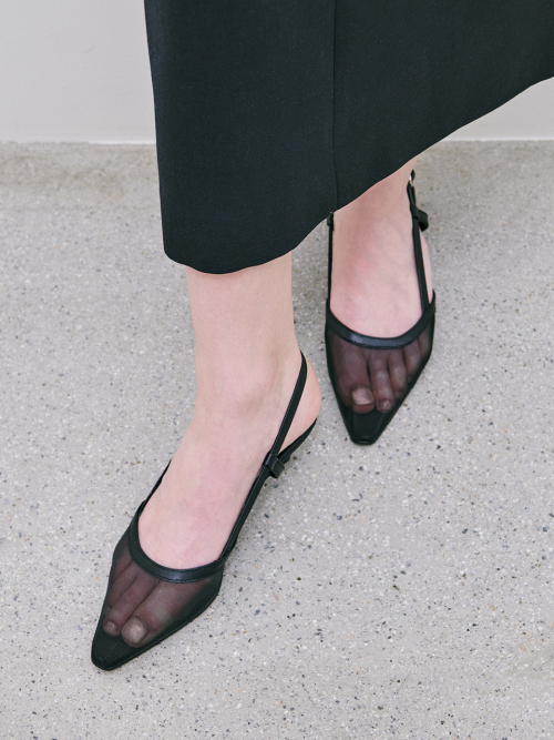 어느 옷차림에나 세미포인트 토 메쉬 슬랭백 을 신어보세요