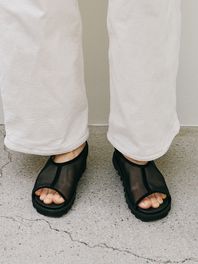 적당히 발을 감싸는 앞 볼부분의 스트랩은 시원하지만 갖춰 신는 느낌이 연출되고