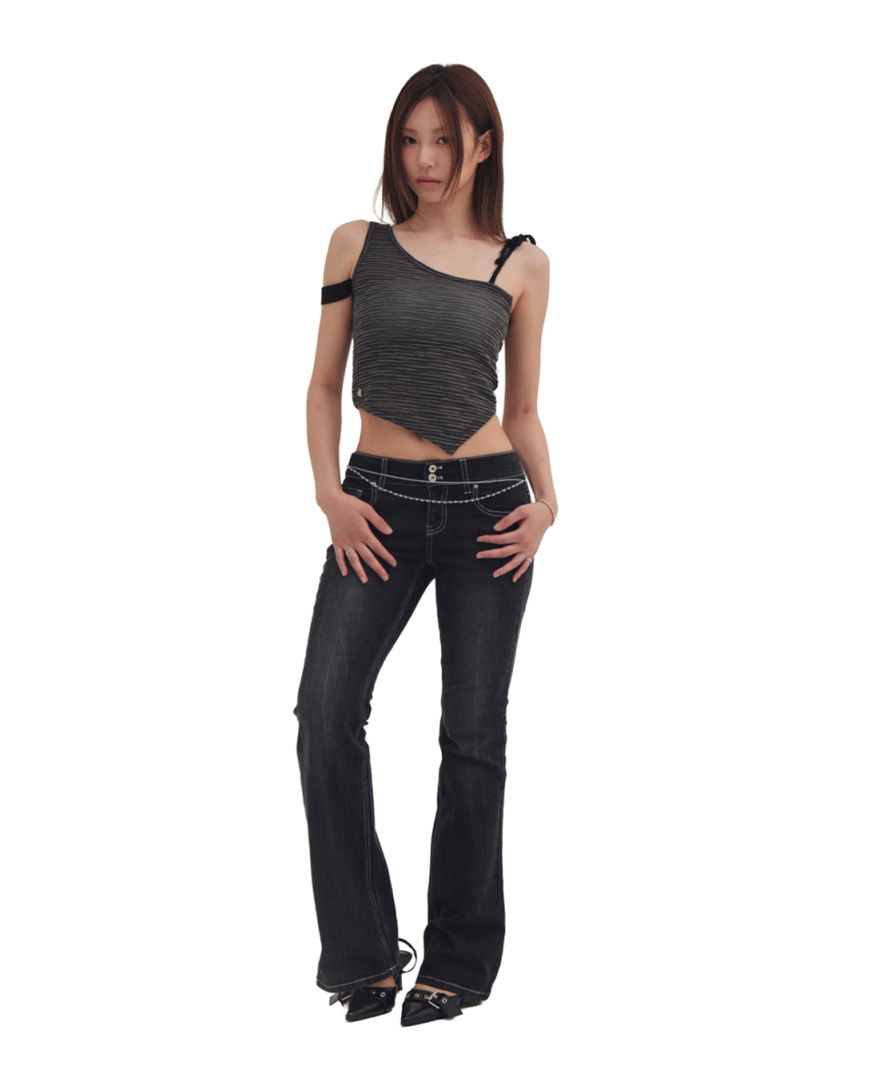 로우라이즈에 부츠컷 디자인으로 골반 실루엣과 더욱 핏한 연출이 가능합니다.