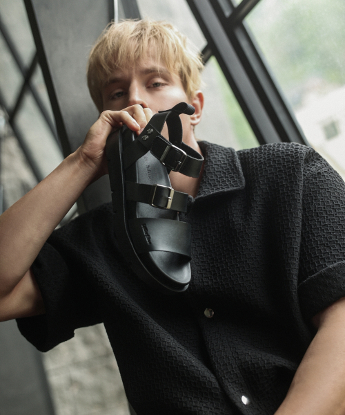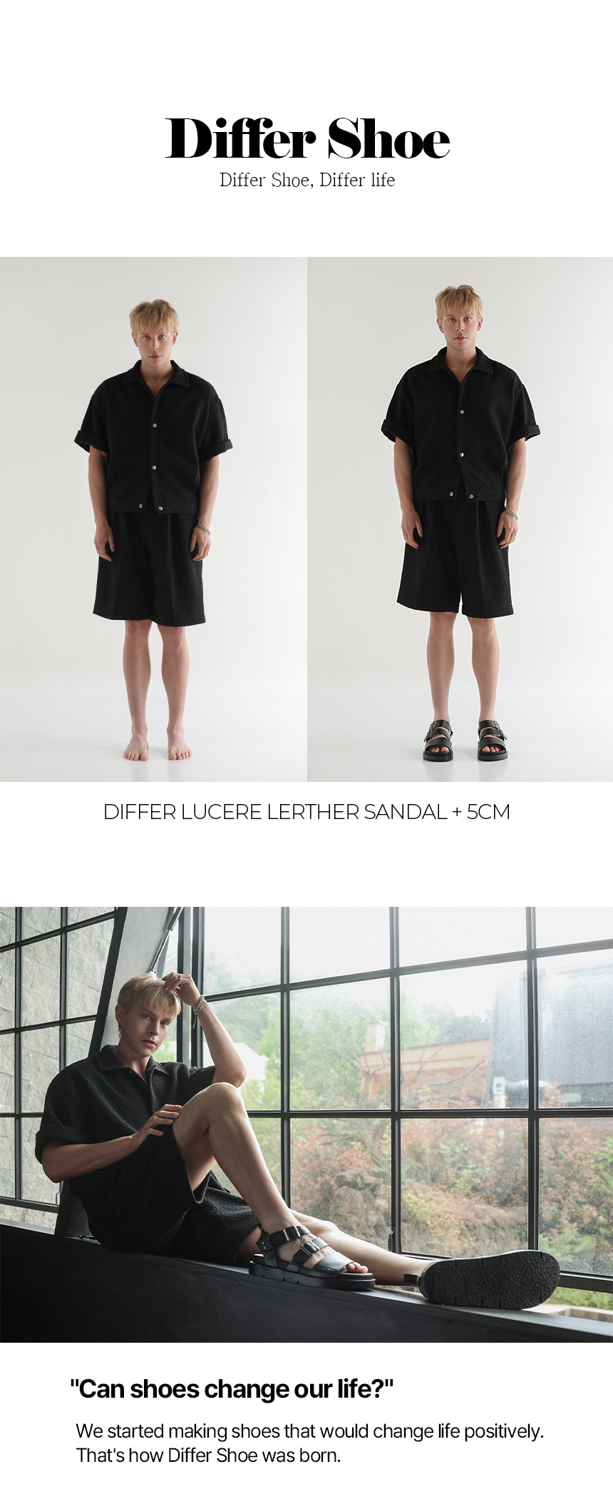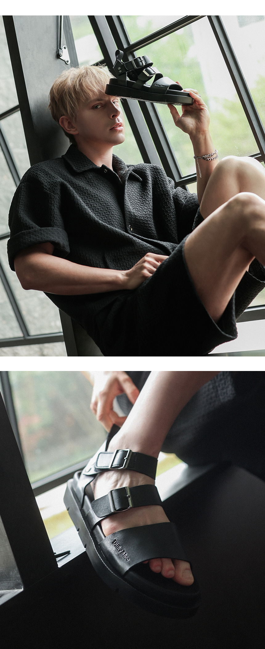 DIFFER LUCERE LERTHER SANDAL 5CM 제품입니다. 루세르 샌들은 발등 2개의 버클과 디퍼슈 가죽 음각이 포인트가 되는 제품입니다.