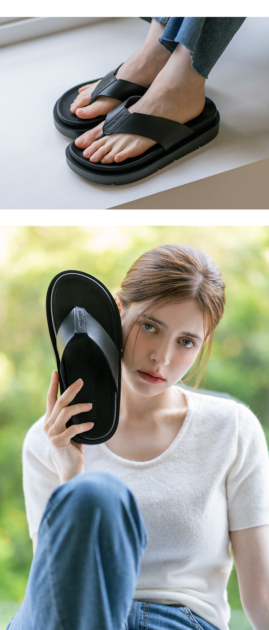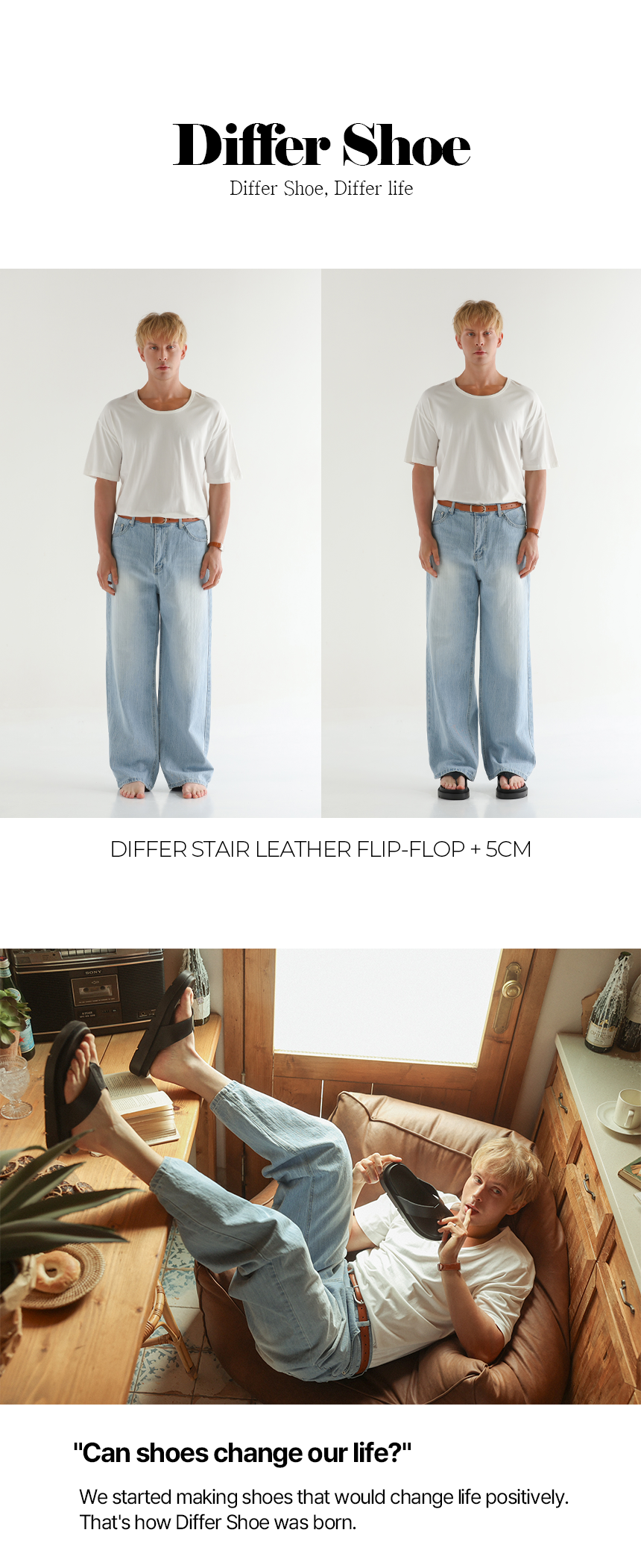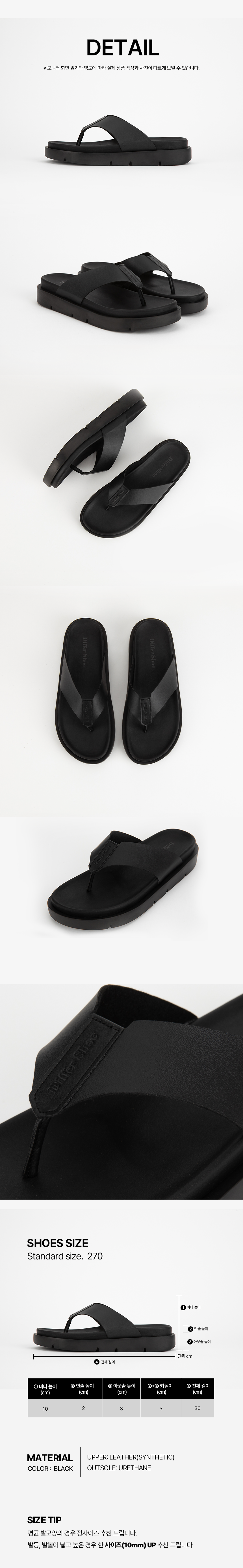 스테어 쪼리는 디퍼슈 로고를 가죽원단에 음각 각인하여 감성적인 무드를 연출합니다. 클라우드 중창을 사용함으로써 5CM 키높이와 편안함을 모두 갖추었습니다.