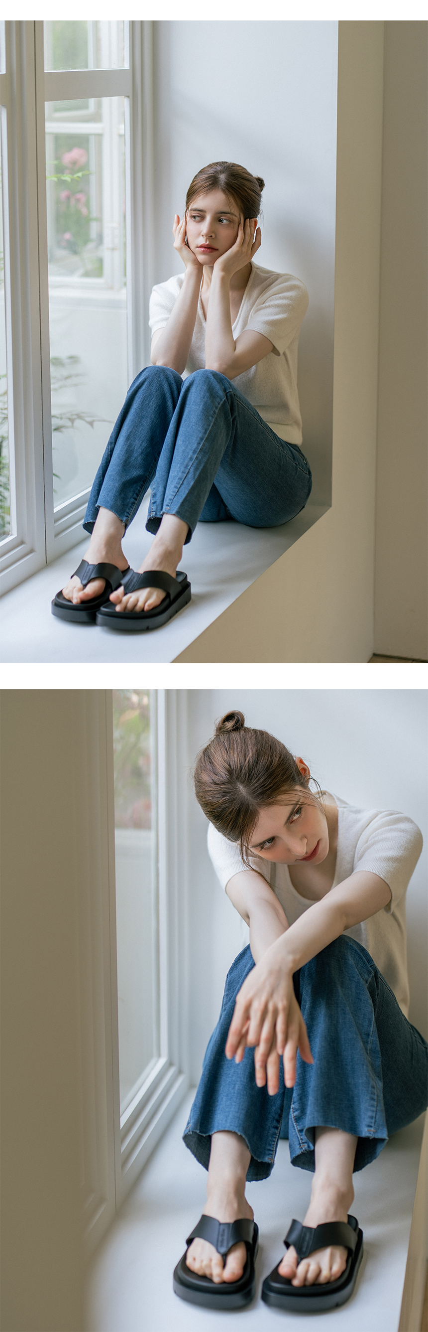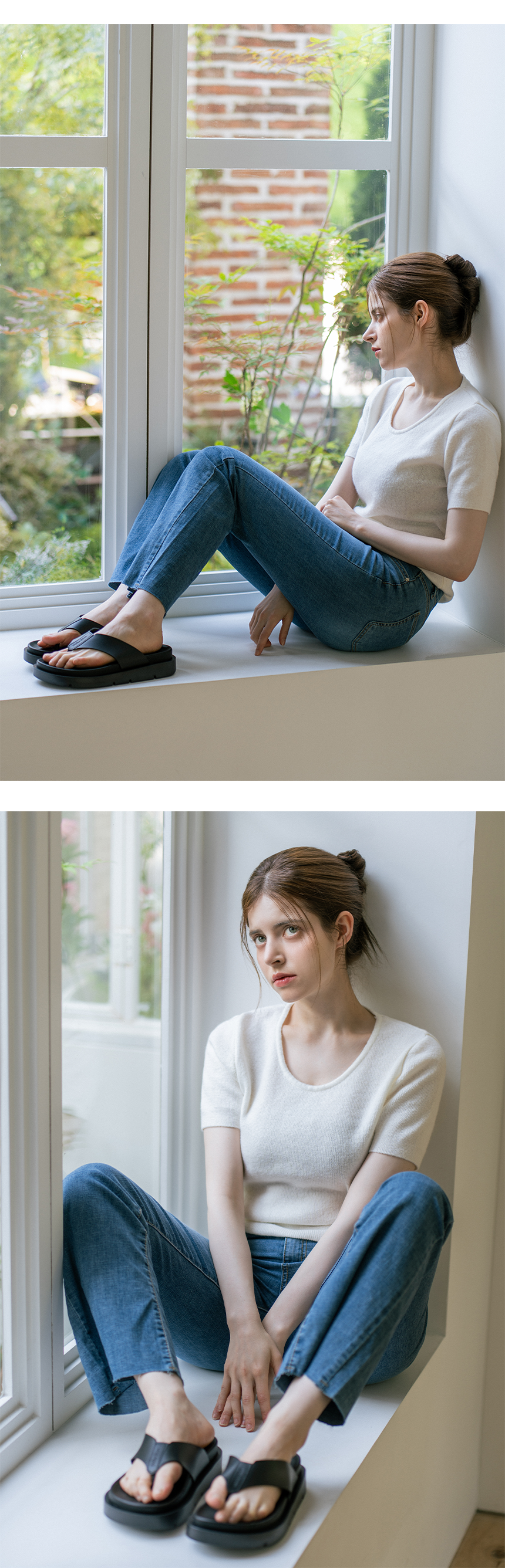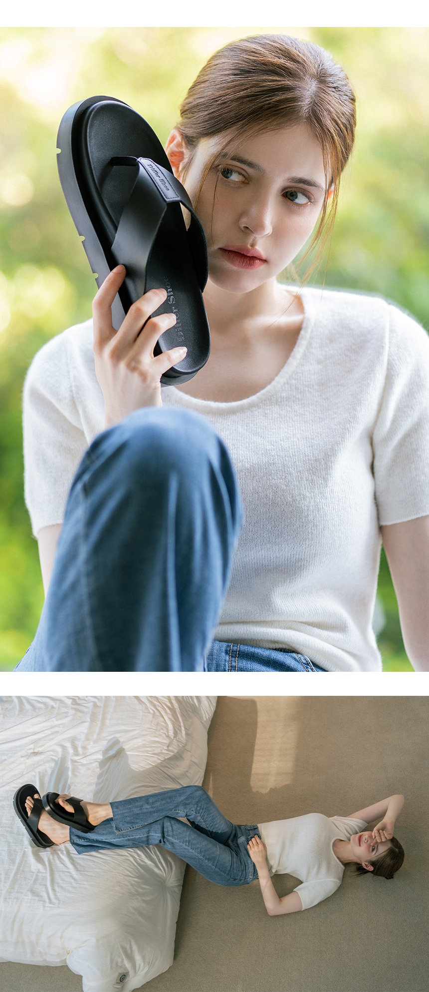 디퍼슈만의 인솔 제조 기법을 통해 통굽 슬리퍼와 달리 계단형태의 중창과 아웃솔을 사용하여 키높이 티가 나지 않도록 제작 되었습니다.