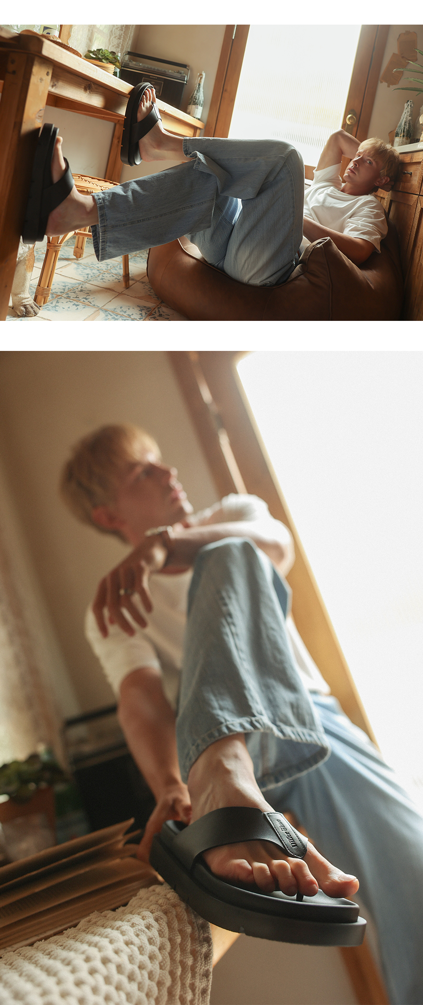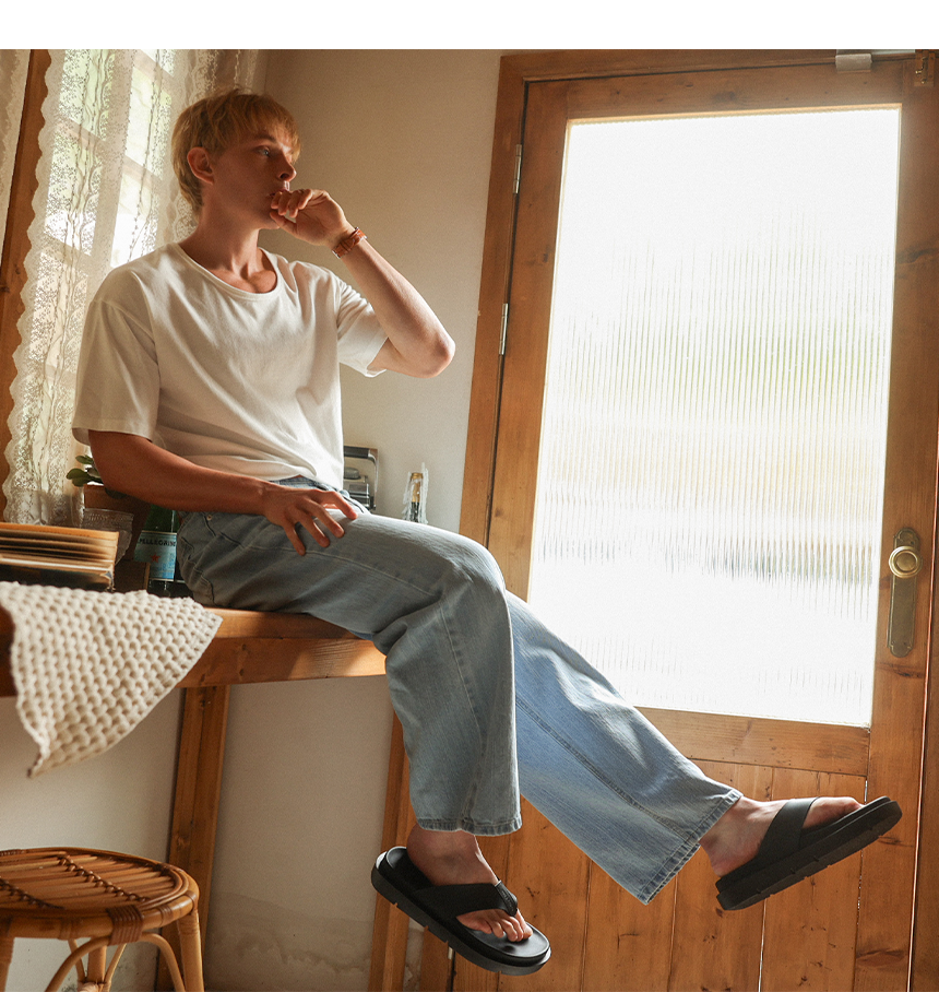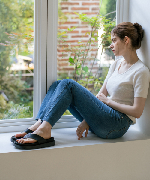발가락 부분은 유연한 고무 가죽원단을 사용하여 쪼리 특유의 거친 촉감과 발가락 통증을 최소화하였습니다.