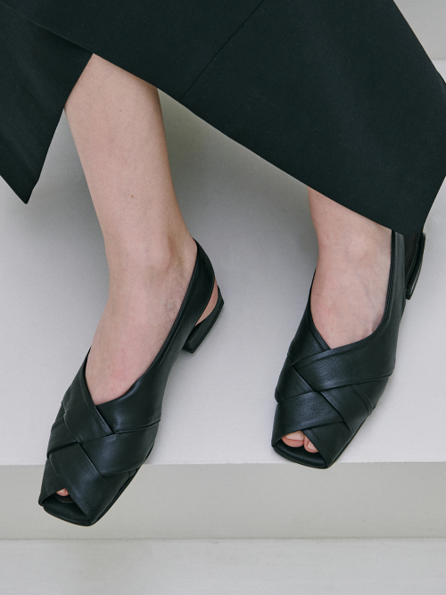 낮고 슬림한 스퀘어 형태의 블럭 힐이 도시적인 여성미를 강조하며,