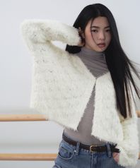 우먼즈 롬버스 퍼지 가디건 [아이보리]