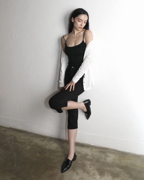 - 슬림핏 실루엣의 카프리 팬츠