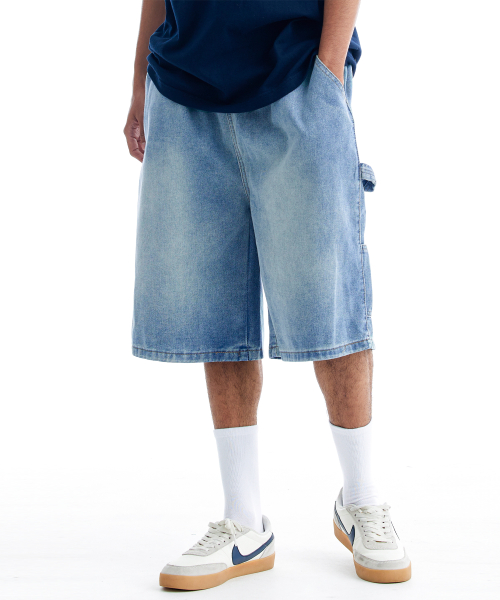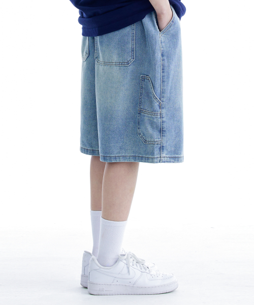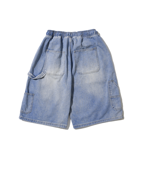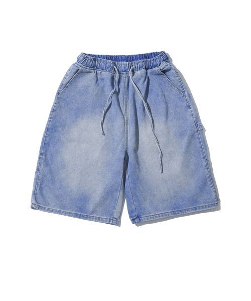 버뮤다 카펜터 숏 데님팬츠 밴딩 라이트 블루