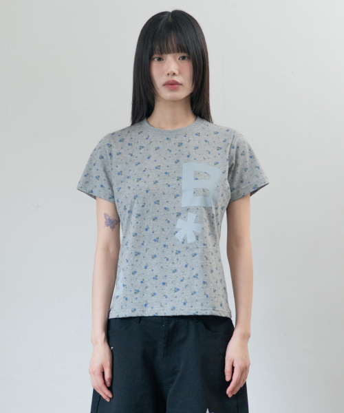 B logo 슬림핏 티셔츠 [플라워 그레이]