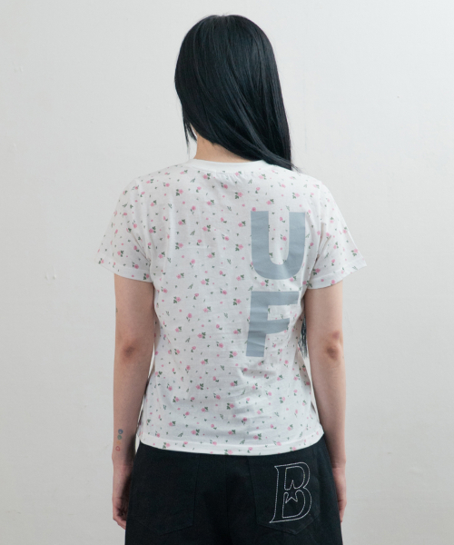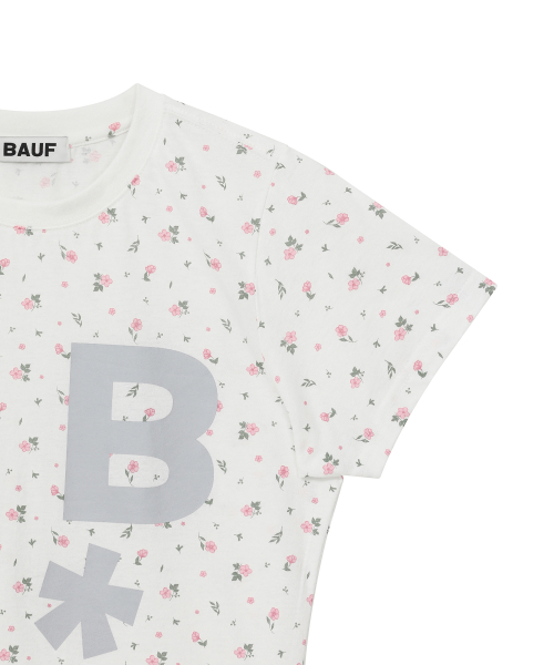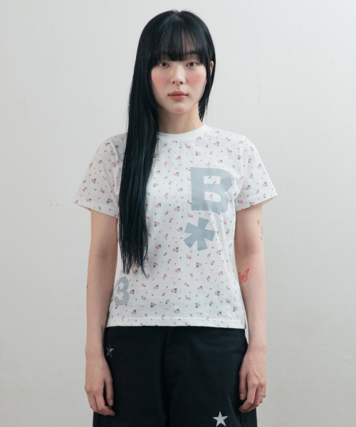 B logo 슬림핏 티셔츠 [플라워 화이트]