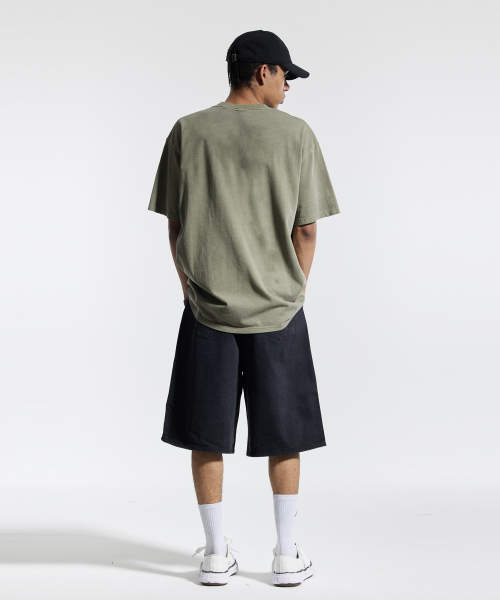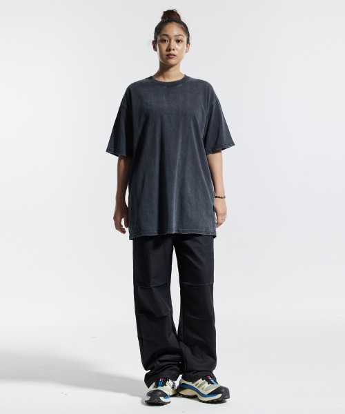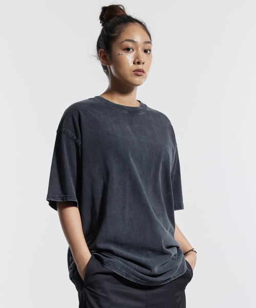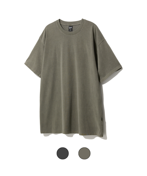 피그먼트 절개 오버핏 반팔 티셔츠 (그레이)