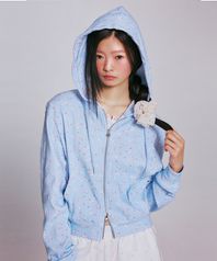 SHEEP PATTERN EYELET HOOD ZIP-UP_LIGHT BLUE